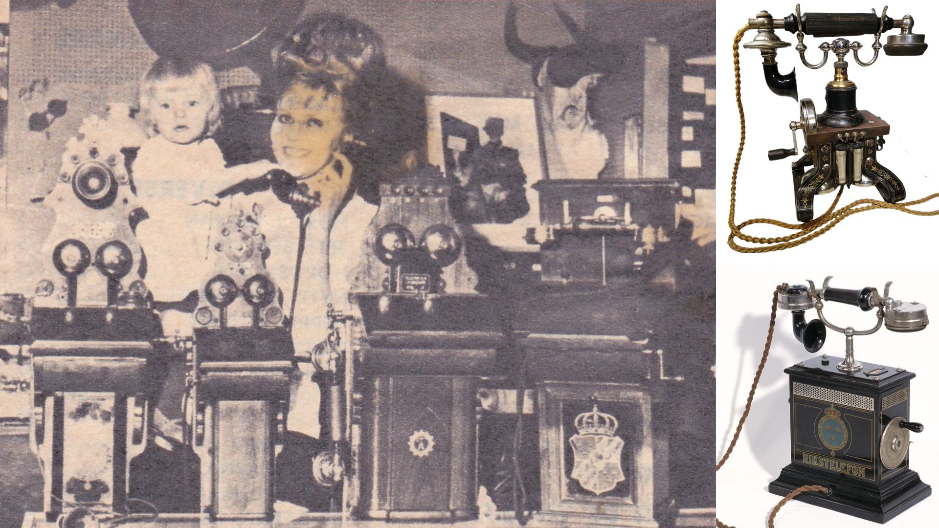 Jag växte upp bland antika och kuriosa föremål – både på Jazzpuben Stampen i Gamla stan och i familjens antikaffär Tunnelshopen på David Bagares gata. På en av bilderna ses min mamma Gun Holmquist och jag i butiken bland ett gäng äldre väggtelefoner av olika modeller. Och därhemma hade vi en ”Tax” som det alltid var roligt att leka med.